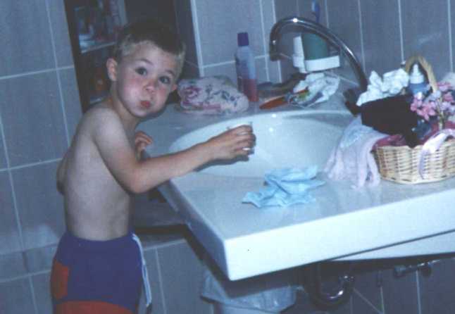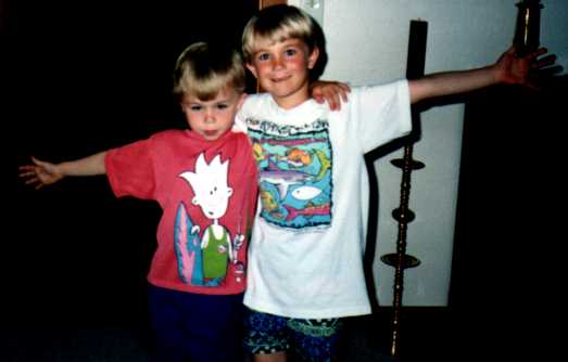 | here's a few more snaps: one of adopted bros Span and Floobs (see above), two more of just Floobs, and a fourth of Span with my dad beside him doing his famous "Laurel" impression. |